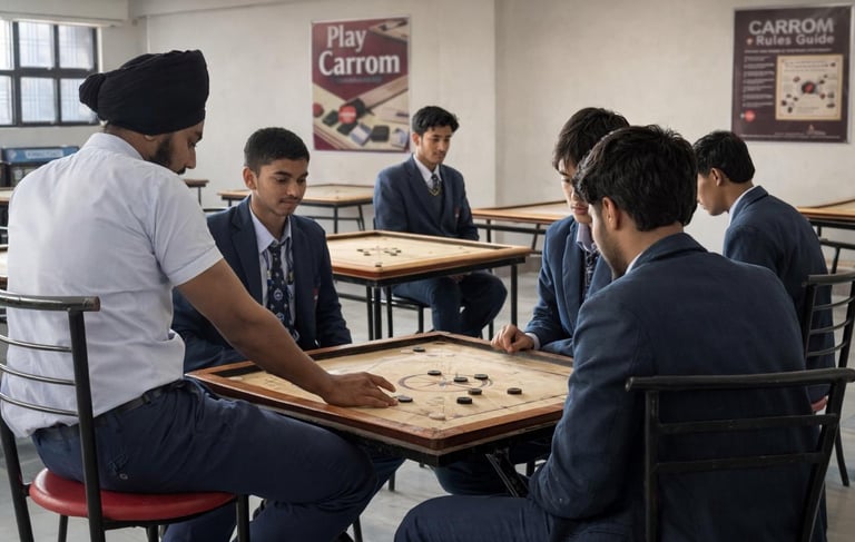 The Table Carrom program provides students with an engaging platform to develop precision, focus, and strategic thinking. As a popular indoor game, carrom enhances concentration, hand-eye coordination, and patience while promoting healthy competition.